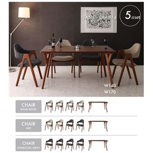 ダイニングセット 5点セット(テーブル+チェア4脚) 幅140cm テーブルカラー:ウォールナットブラウン チェアカラー:サンドベージュ 天然木ウォールナット材 モダンデザインダイニング WAL ウォル