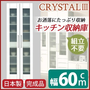 食器棚(キッチン収納庫) 【幅60cm】 飛散防止加工ガラス扉/可動棚付き 日本製 ホワイト(白) 【完成品】