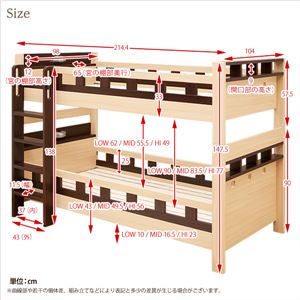 下段ベッドは3段階調節可能に加え分離してシングルベッドとしても使用可能!