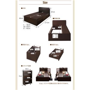 > チェストベッド ダブル【薄型ポケットコイルマットレス付き】フレームカラー:ダークブラウン マットレスカラー:アイボリー スライド収納付き_大容量チェストベッド Every-IN エブリーイン