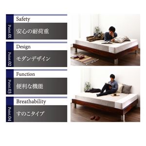 通常、すのこ部分に荷重がかかりやすいため布団では使用できないことが多いすのこベッド。当商品の幅広の床板は耐久性に優れた作りなので、お布団でも安心してご使用いただけます。