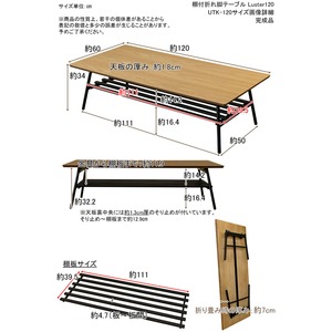 棚付き折れ脚テーブル Luster 120 オーク(OAK)