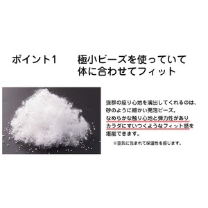 組成:カバー(表地/ポリエステル87%、裏地/ナイロン13%)、中袋(表地/ポリエステル95%、ポリウレタン5%)、中材(発砲ポリスチレン(ビーズ))