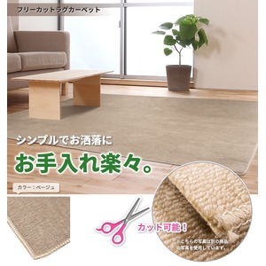 フリーカットができるカーペット/絨毯 【江戸間3畳 176×261cm】 ベージュ 平織り 『モーリス』