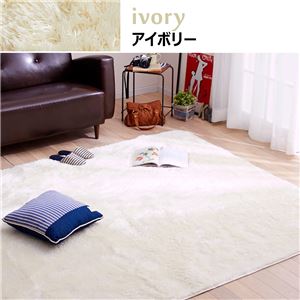 抗菌・防臭・ウォッシャブルさらふわシャギーラグマット 【正方形/約185×185cm】 アイボリー 洗える すべりにくい加工