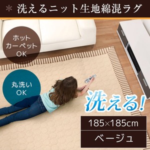 オールシーズン使える柔らかタッチラグ 185×185cm ベージュ ラグ 洗える ラグマット 綿配合 ストライプニット