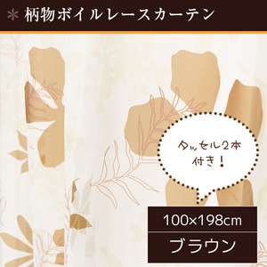 8種類から選べるボイルレースカーテン 【2枚組 100×198cm/ブラウン】 タッセル付き 柄物 ボタニカル 『ボイルアイリ』