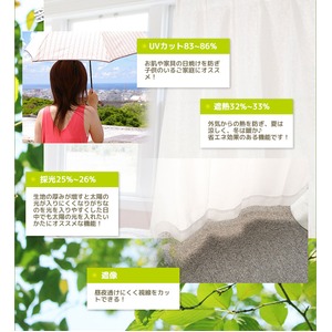特徴:UVカット83~85%、遮熱32~35%、採光24~26%、遮像、洗濯機での丸洗い可能(※各レースの詳細は画像参照)