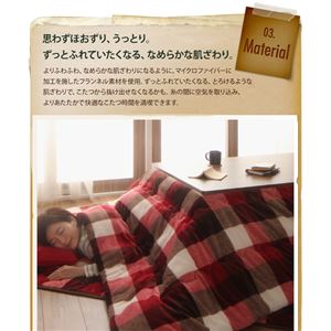 掛け布団は、薄手にすることで、軽やかな掛け心地。厚手の場合、ゴワゴワ感があり、カラダに沿わずにこたつの暖気が逃げてしまいそう…。そんな心配はありません。自然にカラダにフィットするので、中のあたたまった空気を逃しません。