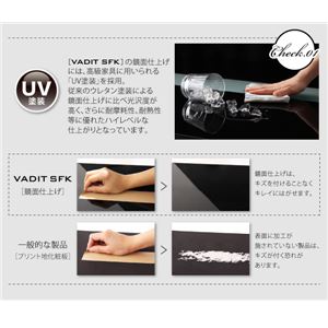 【VADITSFK】の鏡面仕上げには、高級家具に用いられる「UV塗装」を採用。従来のウレタン塗装による鏡面仕上げに比べ光沢度が高く、さらに耐摩耗性、耐熱性等に優れたハイレベルな仕上がりとなっています。