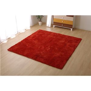 ラグマット カーペット 2畳 正方形 洗える シャギー 『スレッド』 オレンジ 約190×190cm