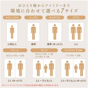※クイーン、キング、ワイドキングは、2枚のマットレスを並べてのご利用となります。