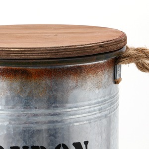 HOME > 生活用品・インテリア・雑貨 > ビンテージ風 ブリキスツール/収納ボックス 【シルバー】 直径27cm×高さ41cm スチール製 天然木座面 〔インテリア家具 什器〕
