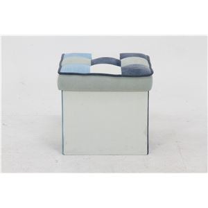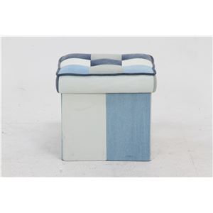 > デニム調 収納付きスツール/オットマン 【1人掛け 幅42cm】 ブルー×パッチワーク 〔リビング ダイニング〕