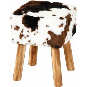 フェイクファースツール/オットマン 【スクエア カウBR】 四角型 幅30cm 木製脚付き