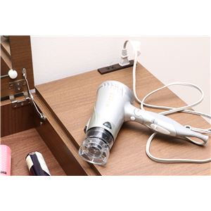 木目調ドレッサーデスク/化粧台 【幅50cm】 ミディアムブラウン 引き出し1杯・フタ付き収納1台・二口コンセント付き