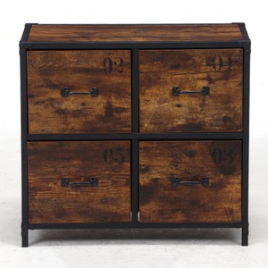 ヴィンテージ風 チェスト/タンス 【2マス×2段 幅74.7cm】 ブラウン 引き出し4杯 金属製脚付き 『クルト』