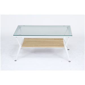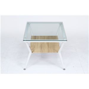 > ガラス製リビングテーブル/ダイニングテーブル 【ナチュラル 幅80cm】 強化ガラス天板 スチールフレーム 収納棚付き 『クレア』