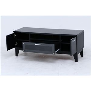 鏡面 ローボード/テレビ台 ワイドタイプ 【ブラック】 幅119cm 32型〜46型対応 引き出し1杯 扉付き収納棚 脚付き 『グロース』