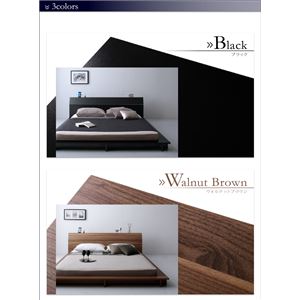 ローベッド セミダブル【プレミアムポケットコイルマットレス付】フレームカラー:ブラック マットレスカラー:ホワイト 棚・4口コンセント付きデザインフロアローベッド Douce デュース
