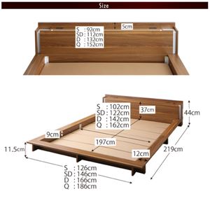 > ローベッド ダブル【スタンダードボンネルコイルマットレス付】フレームカラー:ウォルナットブラウン マットレスカラー:ホワイト モダンライト・棚・コンセント付きデザインフロアローベッド Makati マカティ