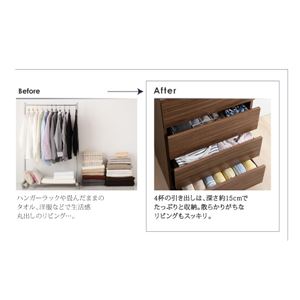 4杯の引き出しは、深さ約15cmでたっぷりと収納。散らかりがちなリビングもスッキリ。